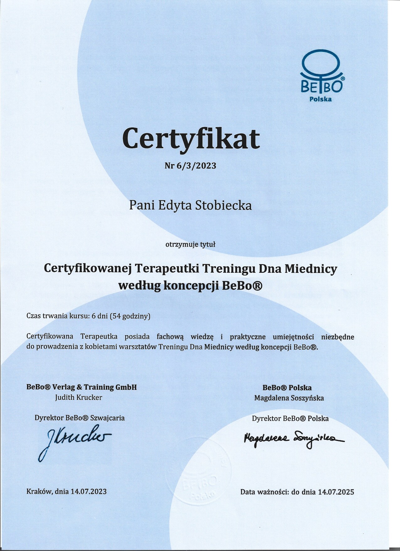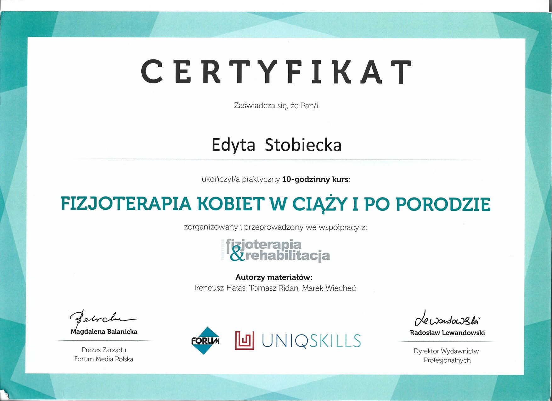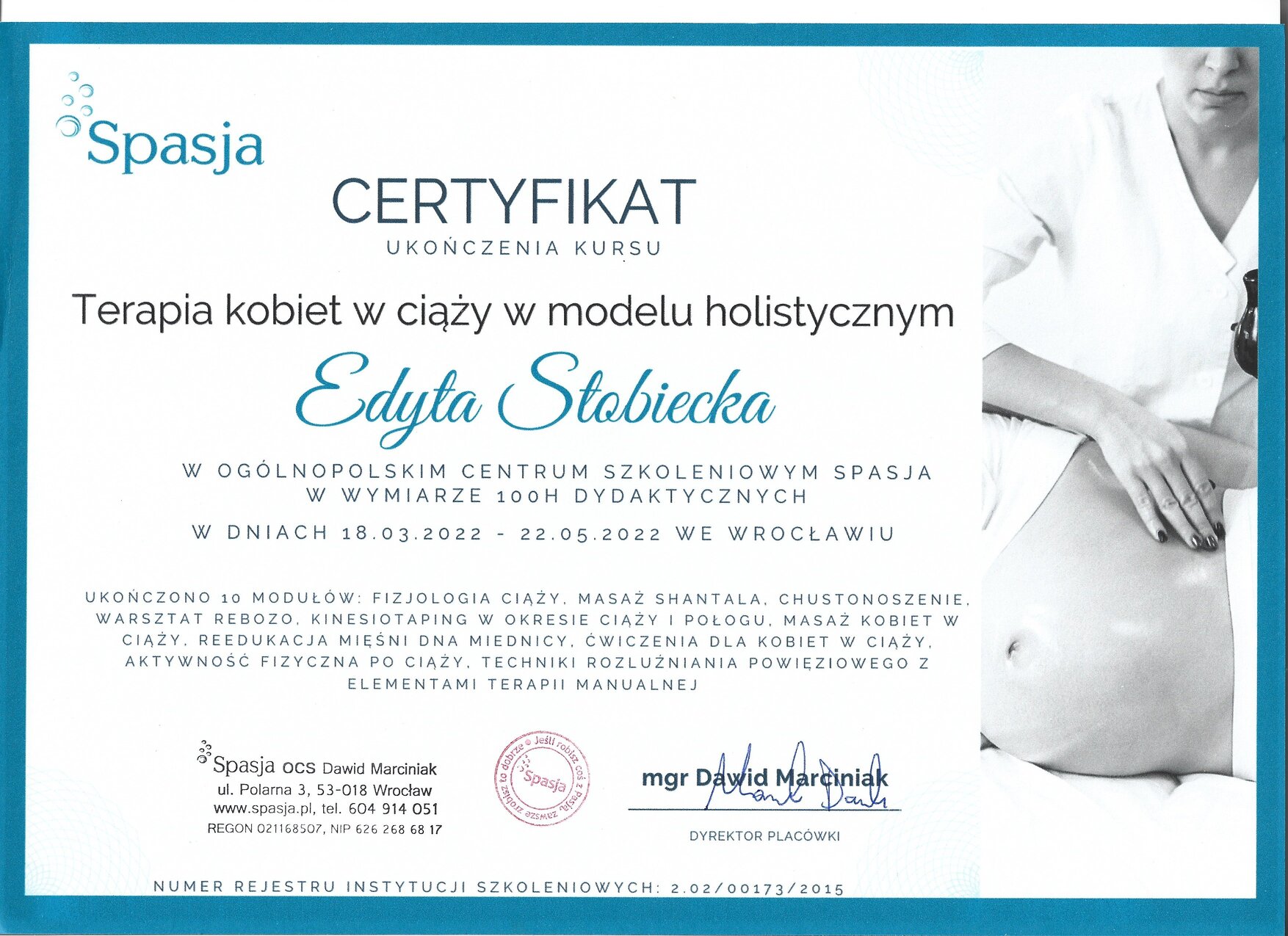 Moje obszary specjalizacji obejmują masaż, fizjoterapię uroginekologiczną, osteopatię, trening oraz terapię kobiet w ciąży i pracę z bliznami. Stale poszukuję nowych i skutecznych metod terapeutycznych, aby zapewnić najlepszą opiekę swoim pacjentkom.