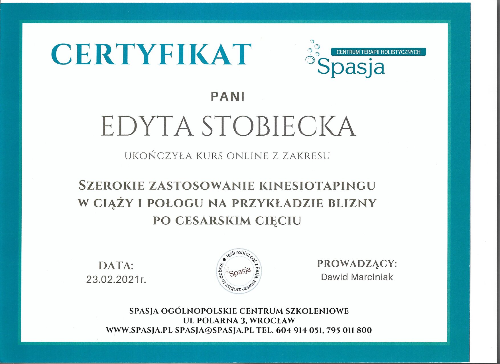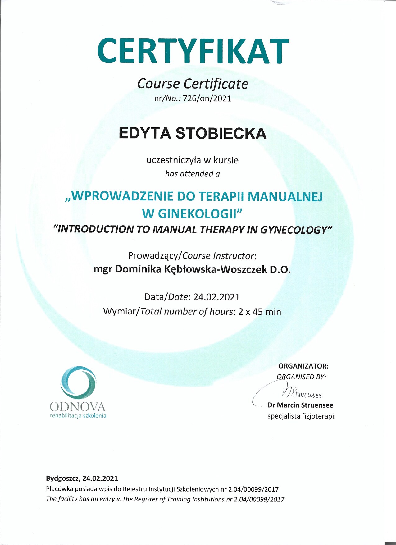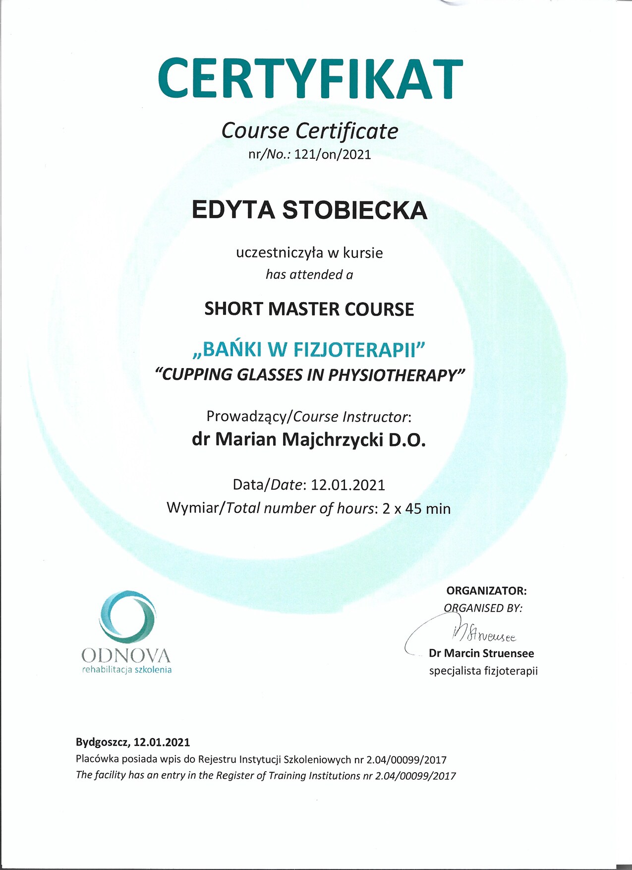 Identyfikator wpisu do Centralnego Rejestru Osób Uprawnionych do Wykonywania Zawodu Medycznego: 2100011915